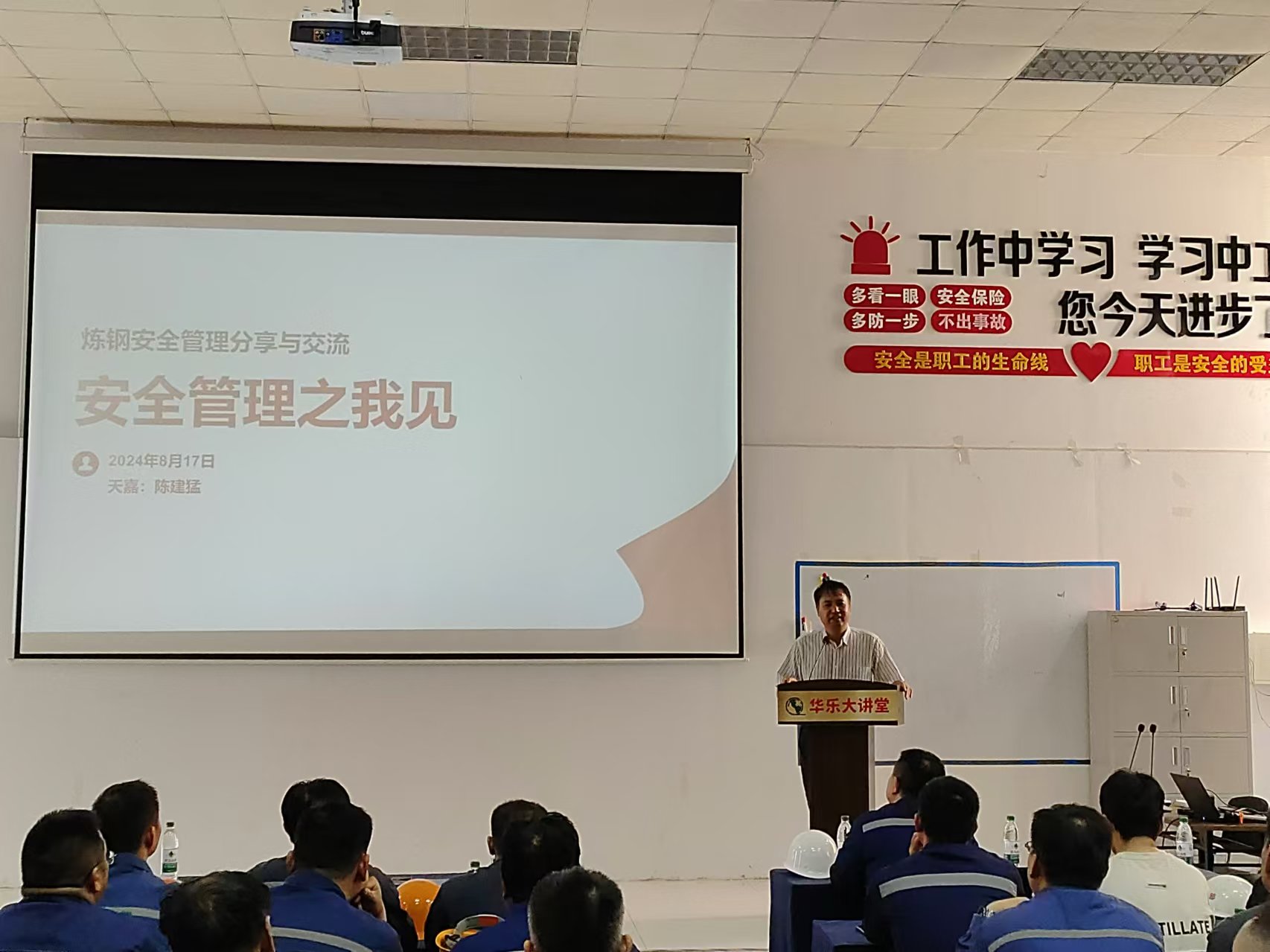 8月17日 ,PA尊龙凯时大讲堂在安全培训中心如期开课了  !来自各个厂区以及职能部门近百名职工齐聚在安全培训中心聆听学习。