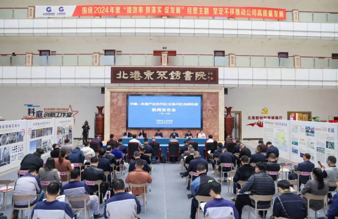 据北港新材官方消息,3月15日,由北海市人民政府主办,北海市投资促进局、北海市铁山港(临海)工业区管理委员会、北港新材料公司联合承办的中国—东盟产业合作区(北海片区)场景机遇新闻发布会暨高端金属新材料产业场景招商对接会在北港新材料永不锈书院举办。