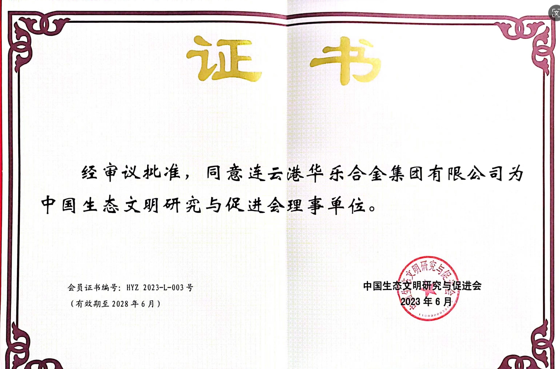 荣誉资质:生态文明促进会理事