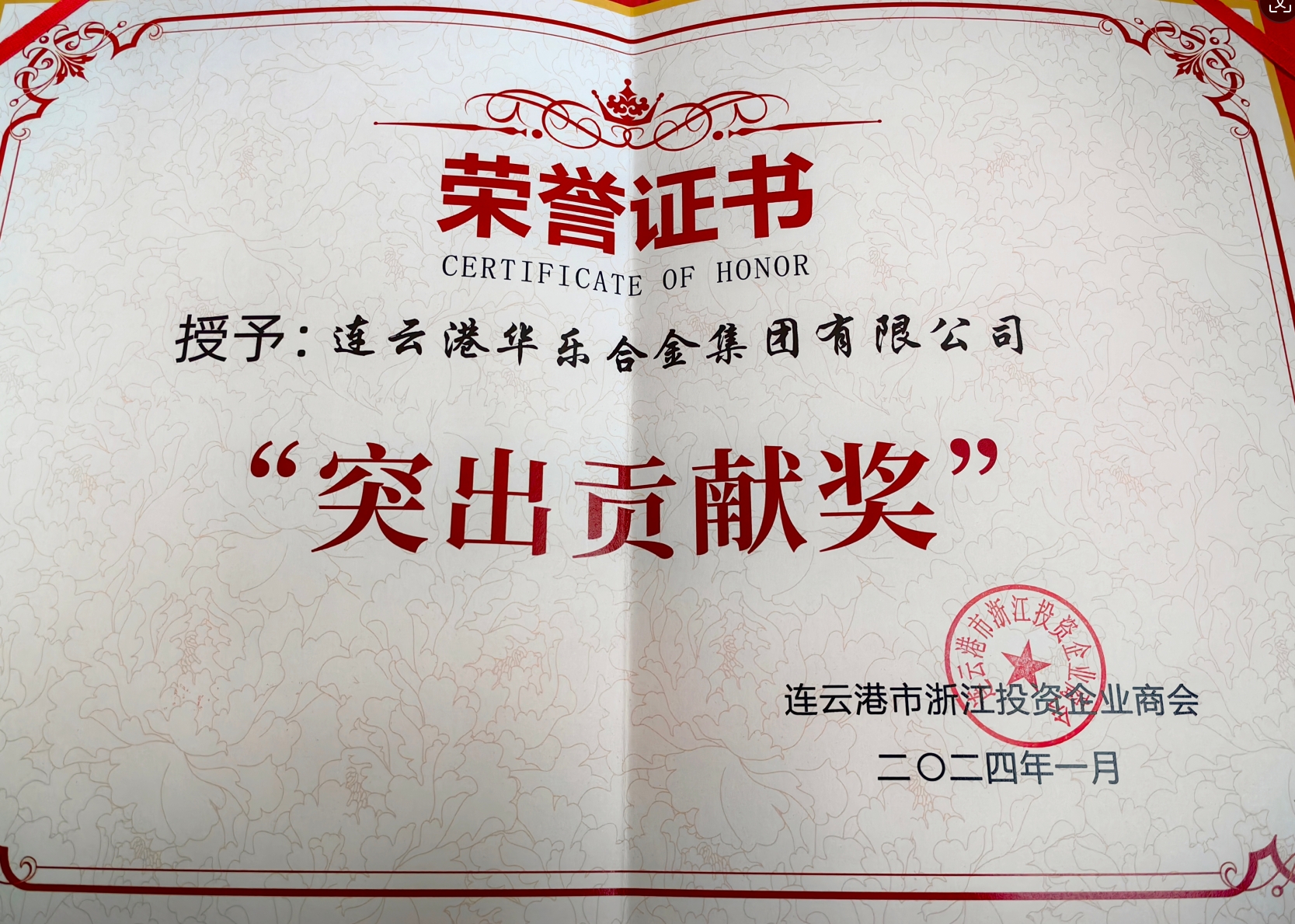 荣誉资质:突出贡献奖