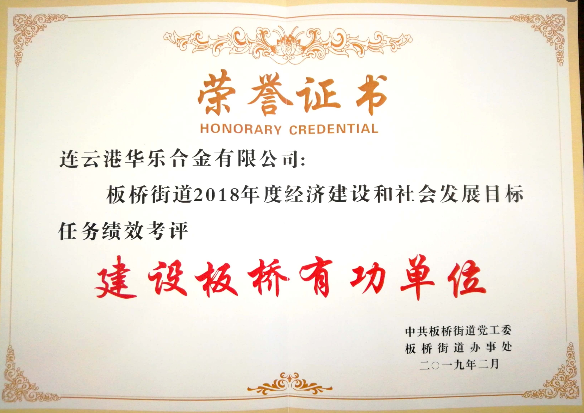 荣誉资质:建设板桥有功单位