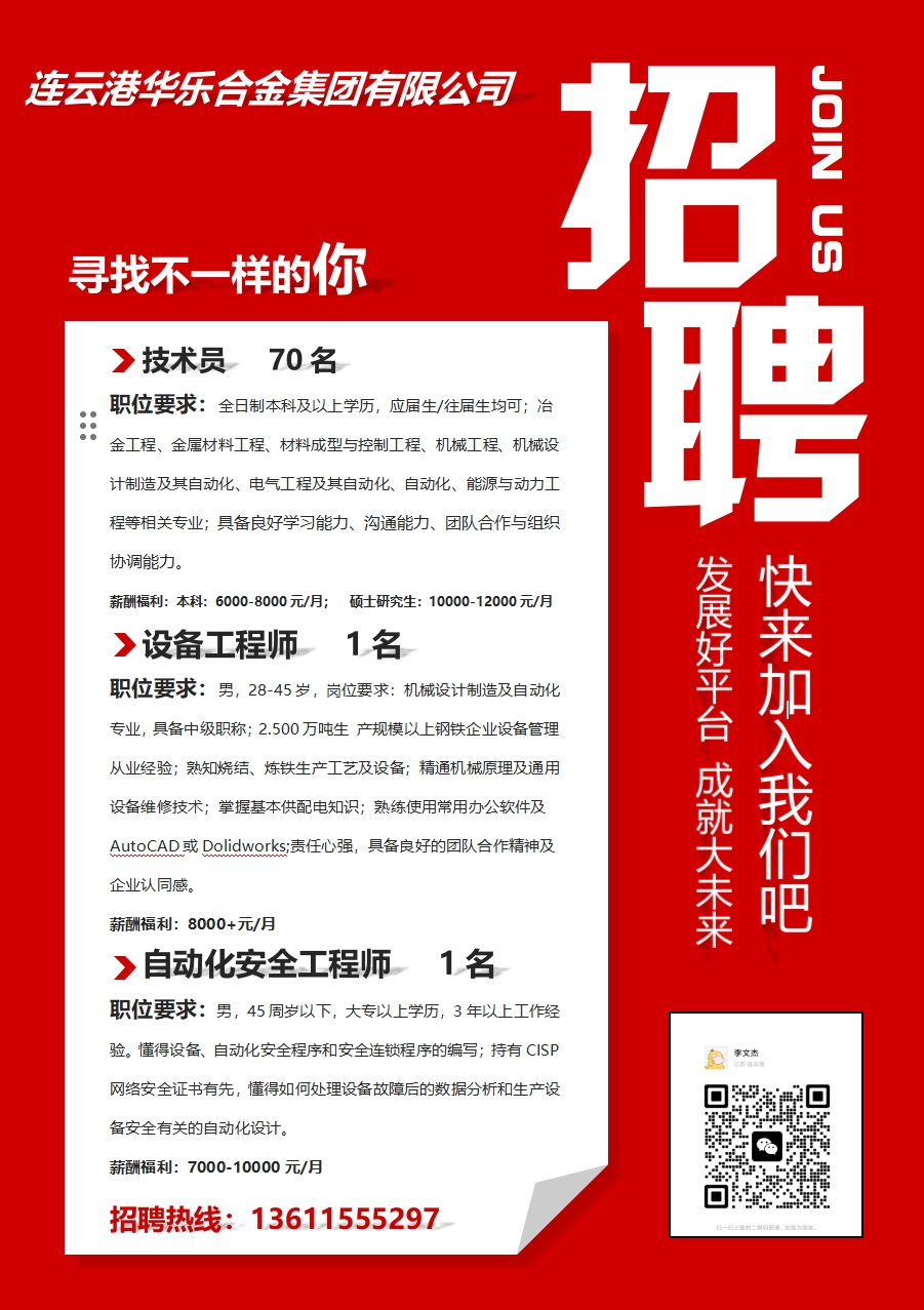 连云港PA尊龙凯时合金多个技术性岗位招聘